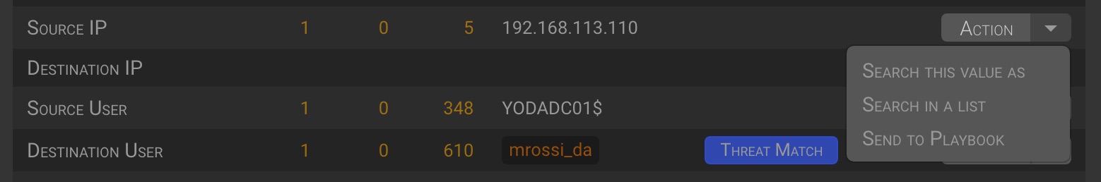 | Threat Int. | A Threat Match button is displayed when a parameter matches one or more of the defined threat intelligence lists. |