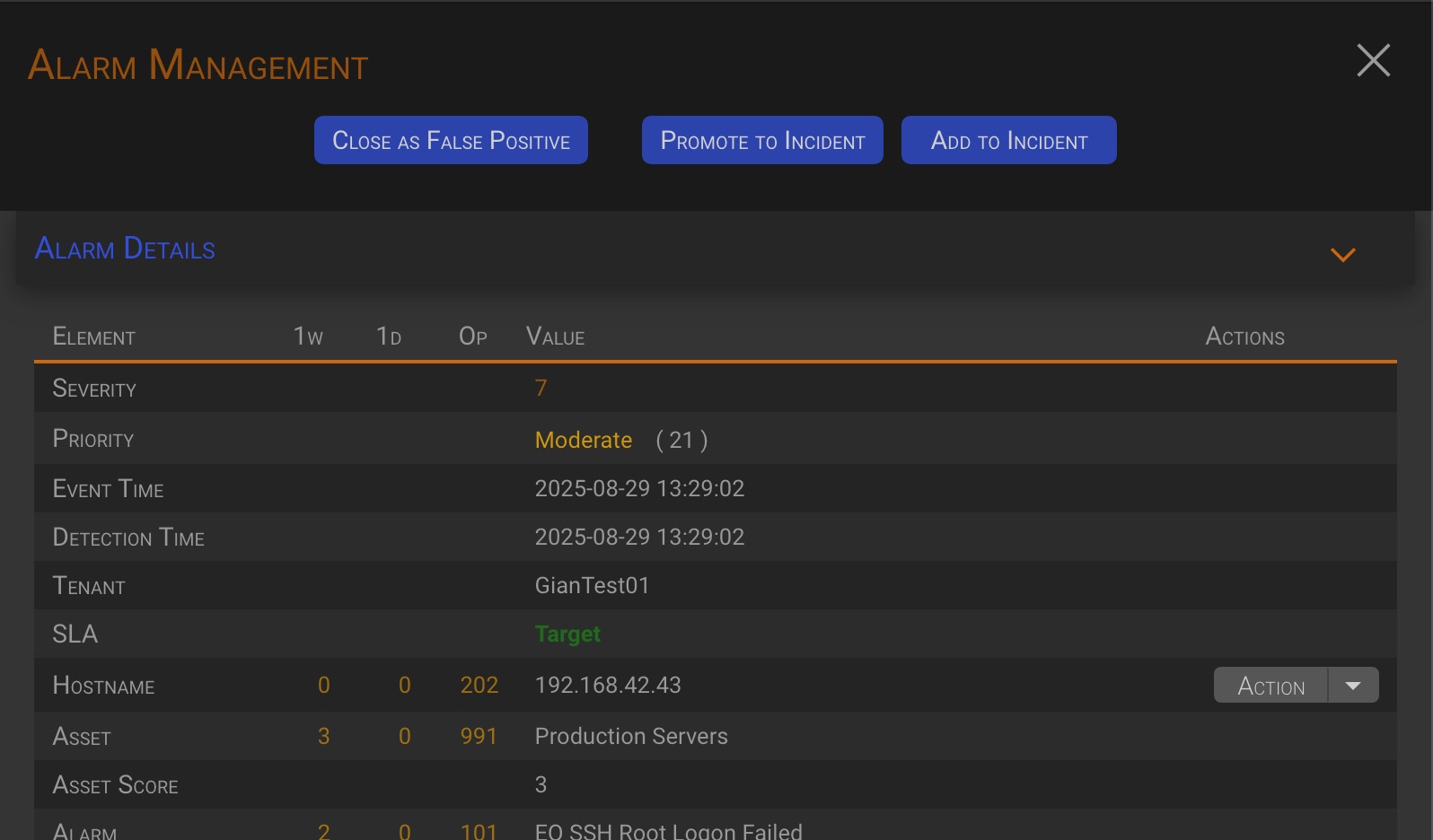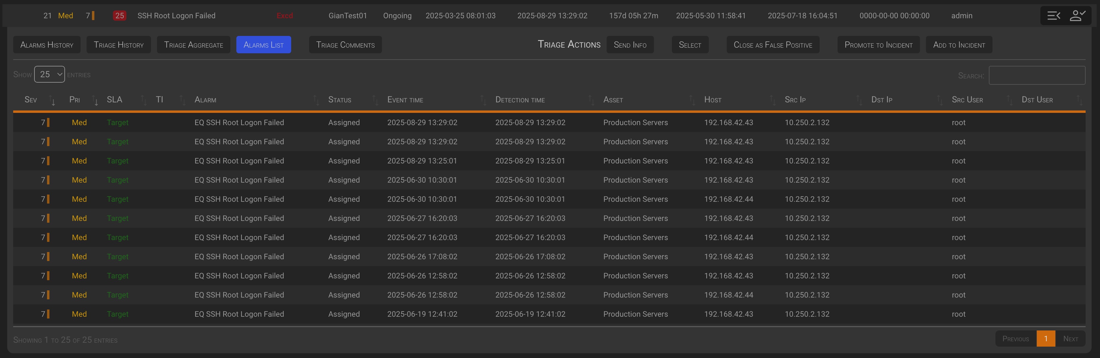 This is the point where it is possible to create a False Positive Rule, by clicking on the desired alarm row.
